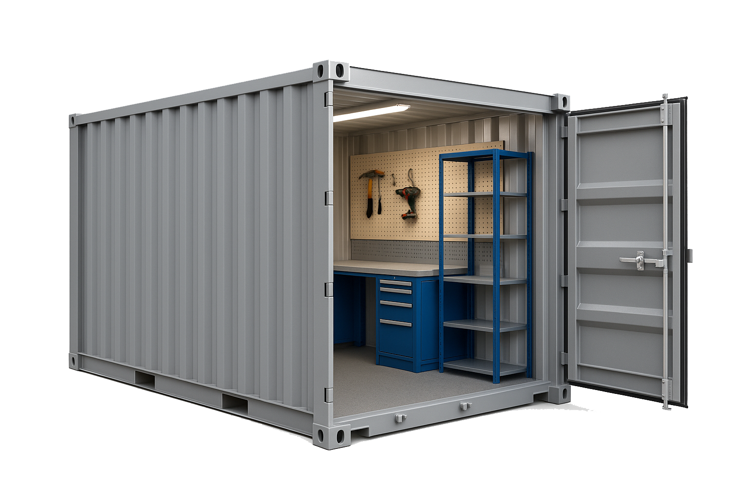 Ein Werkstattcontainer vereint Lagerraum und Arbeitsplatz in einer robusten, mobilen Einheit. Ausgestattet mit Werkbänken, Regalsystemen, Stromanschlüssen und Beleuchtung ermöglicht er professionelles Arbeiten unter nahezu allen Bedingungen – direkt auf der Baustelle, in Industrieanlagen oder bei mobilen Einsätzen. Die Stahlkonstruktion schützt Werkzeuge und Maschinen zuverlässig vor Diebstahl und Witterung. Durch isolierte Wände, rutschfesten Bodenbelag und flexible Innenausstattung kann der Container individuell an die jeweiligen Anforderungen angepasst werden. Ideal für Handwerksbetriebe, Wartungsteams und alle, die vor Ort produktiv sein müssen.
